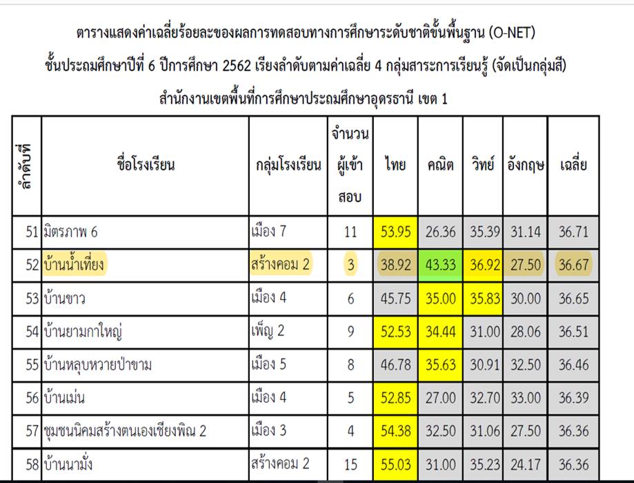 ผลการทดสอบ(O-NET ปีการศึกษา 2562)
