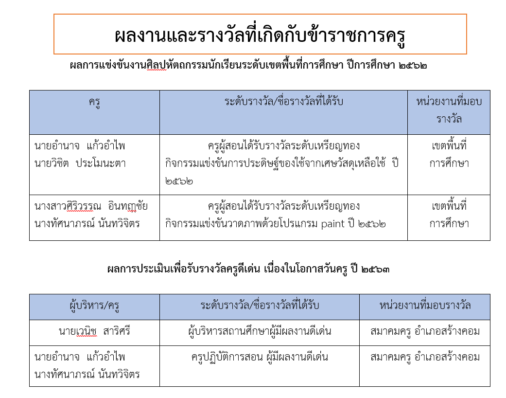 ผลงานและรางวัลที่เกิดขึ้นกับครู